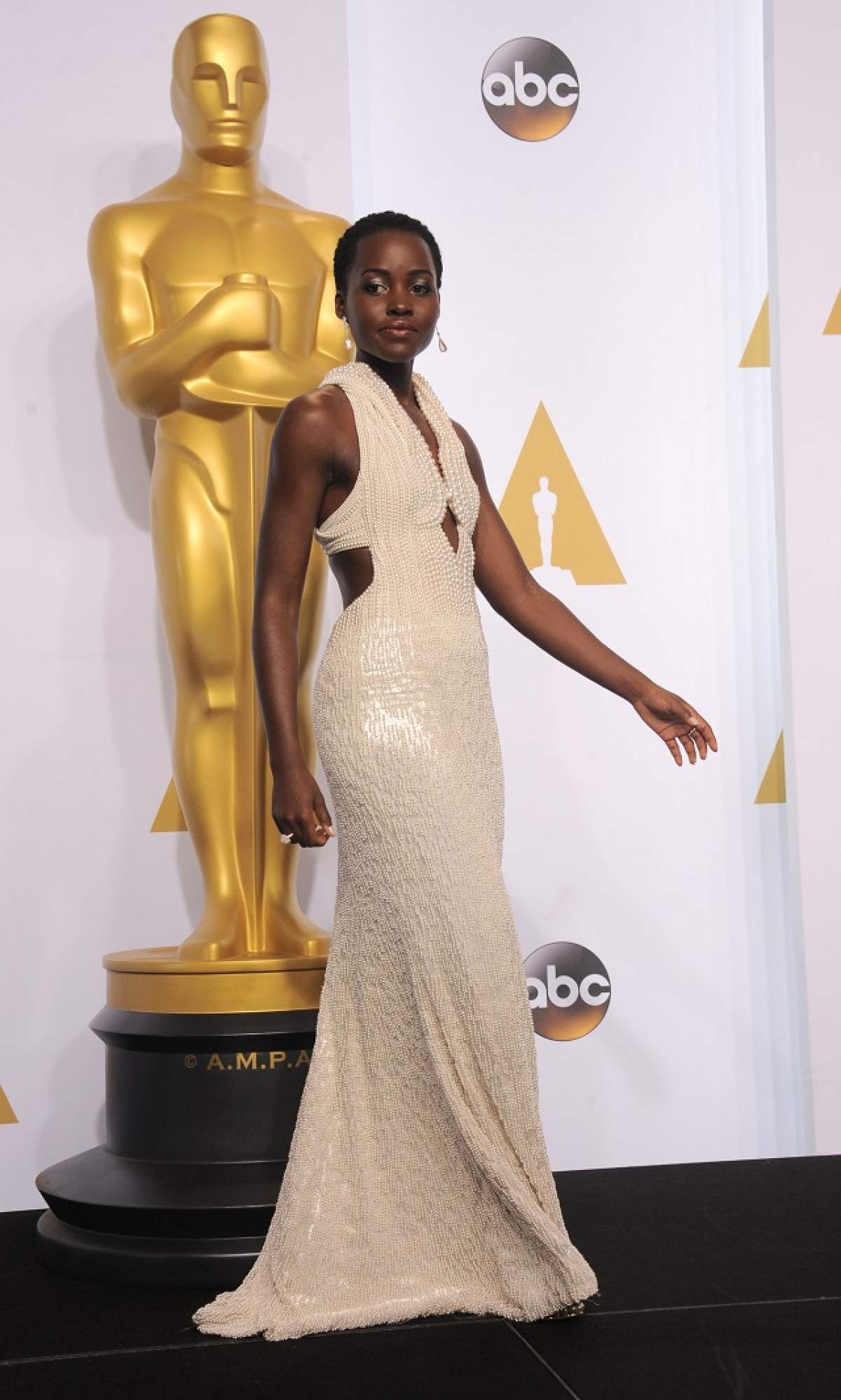 Rochia realizată manual, din 6000 de perle, a vedeta covorului roşu de la premiile Oscar de anul acesta. Lupita Nyong'o a atras toată atenţia prin ţinuta ei elegantă şi feminină, care poartă semnătura Calvin Klein şi a cărei valoare se ridică la suma de 150.000 de dolari.