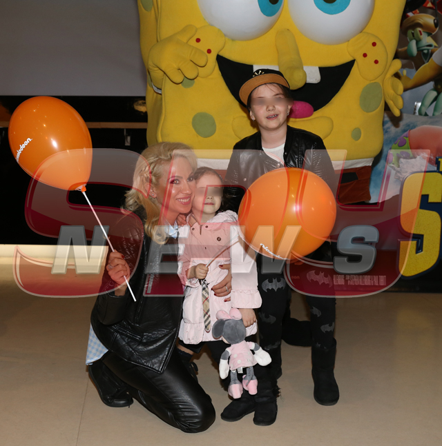 Rocsana Marcu şi-a scos fetele la film, într-un centru comercial din Capitală, unde are loc premiera unei pelicule de animaţie.