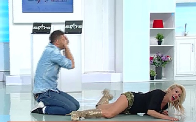 VIDEO / Rocsana Marcu şi Răzvan Botezatu s-au accidentat, în direct! S-au ales cu o cazatură în cap şi cu buza spartă!