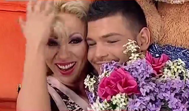 El i-a adus flori şi s-a rugat de ea să nu-l "părăsească", după care i-a spus că ar vrea să doarmă cu ea în pat. În acel moment, au sărit unul peste altul pe canapea şi s-au prefăcut că se sărută în spatele unui buchet mare de flori.