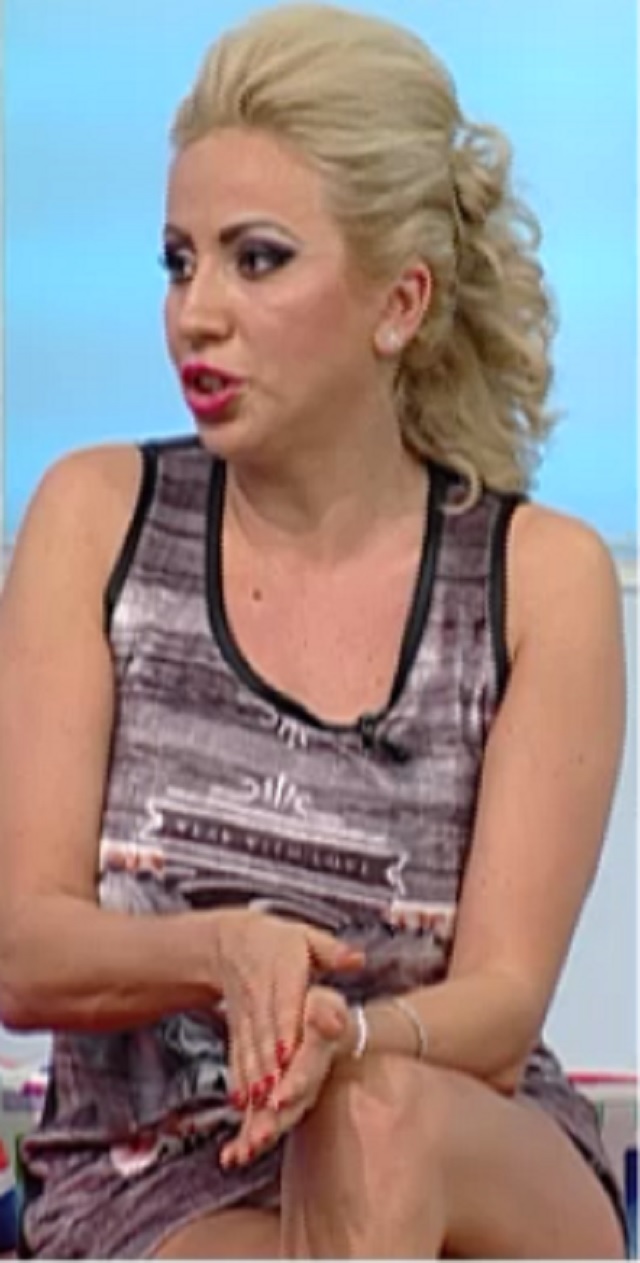Într-un maiou mai lung; aşa ai fi crezut că a venit la emisiune Rocsana Marcu, dacă nu te-ai fi uitat mai atent. Adevărul este că prezentatoarea avea pe sub maioul inscripţionat o pereche de pantaloni scurţi minusculi. Cu siguranţă domnilor nu le-a displăcut vestimentaţia blondei, mai ales că arată impecabil. Nici nu ai spune că este mamă a doi copii!