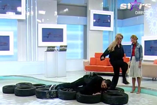 Rocsana şi Bote au obosit în câteva minute, prezentatorii TV au nevoie de antrenament pentru a face faţă exerciţiilor intensive.