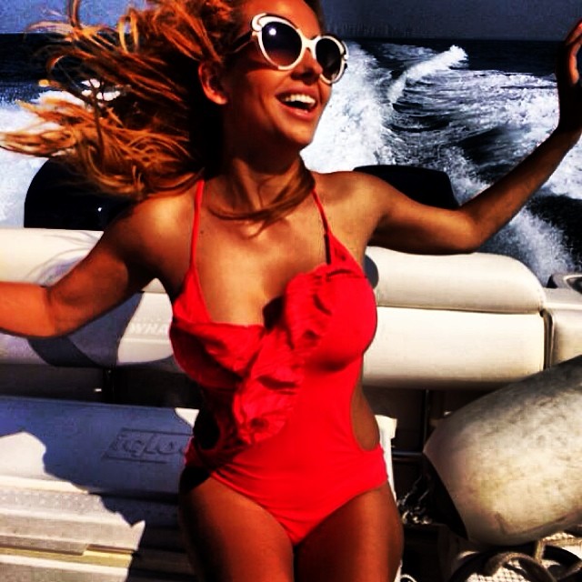 Blonda a publicat o poză pe contul de Instagram în care se află în largul mării cu iubitul ei. Rodica apare într-un costum de baie roşu şi este foarte, foarte bronzată, semn că fosta asistentă TV stă toată ziua pe plajă.