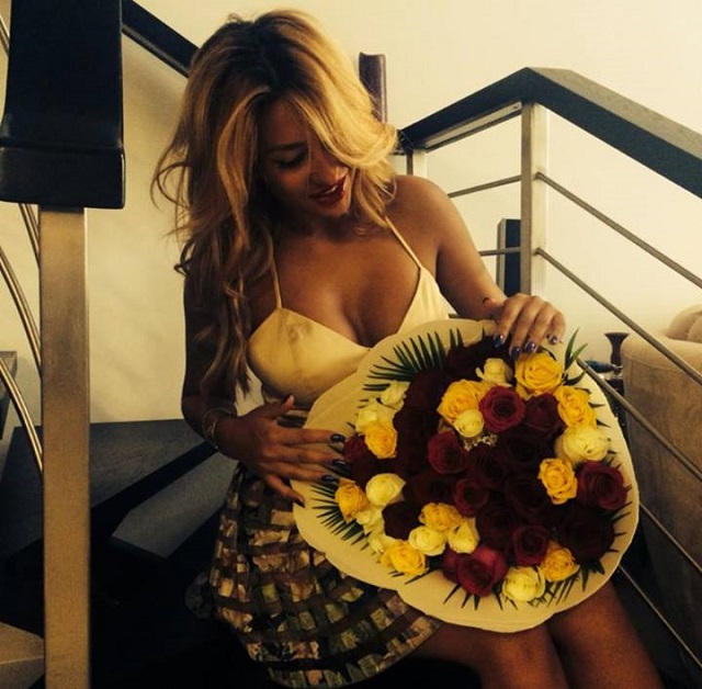 Fosta asistentă TV a publicat pe pagina de Facebook o imagine care face cât o mie de cuvinte. Rodica a primit din partea iubitului ei un buchet foarte frumos de trandafiri. Blonda a vrut să le arate şi prietenilor virtuali cât de răsfăţată este ea în Dubai, aşa că a făcut imediat o poză în care ţine florile în braţe, iar bărbaţii s-au putut bucura de o privelişte de vis, căci Rodica şi-a lăsat la vedere bustul extrem de bronzat.