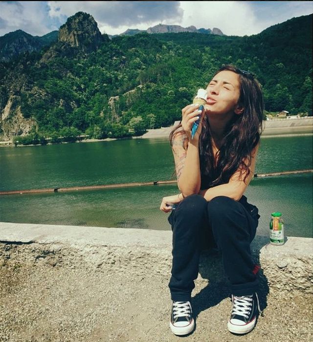 Evident, cum este o fire zburdalnică, cântăreaţa s-a pozat în timp ce se strâmba şi mânca îngheţată.