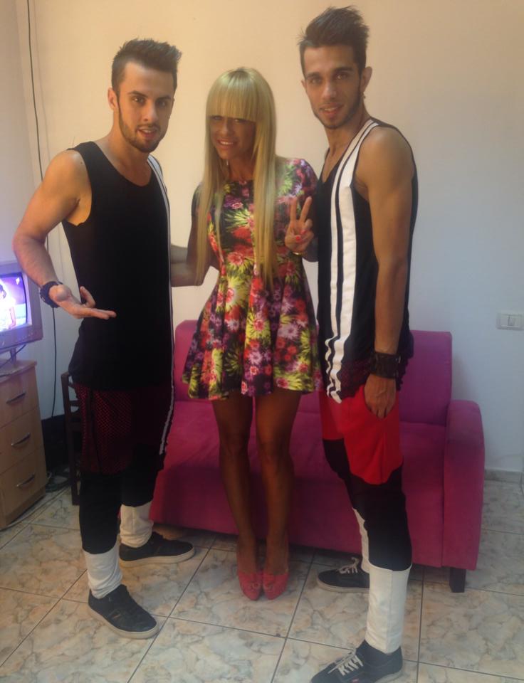 În cea mai recentă fotografie, pe care şi-a publicat-o pe Facebook, Anda Adam s-a fotografiat alături de cei doi dansatori ai săi.