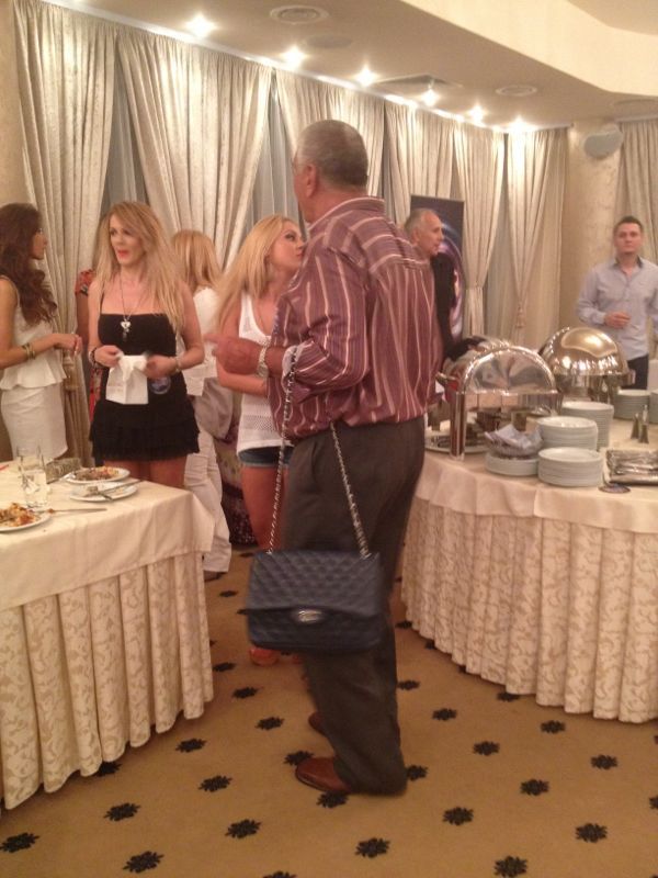 Şi nea Rică a fost prins pe picior greşit! Fosta glorie a Rapidului şi a echipei naţionale a fost pentru câteva minune cuier pentru o doamnă, iar imaginea în care apare cu gentuţa pe mână e clar de colecţie.