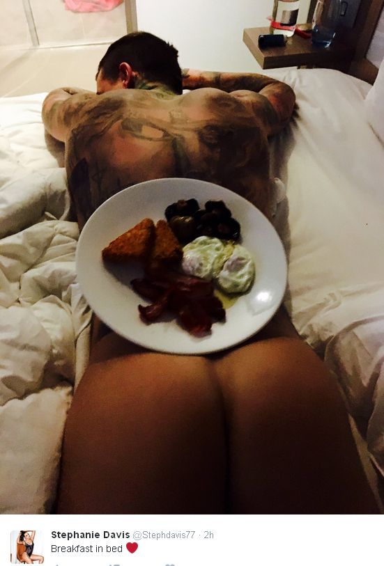 "Mic-dejun în pat", este mesajul care însoţeşte imaginea care a pus pe jar imaginaţia doamnelor şi postată de Stephanie Davis pentru a închide gura răutăcioşilor.