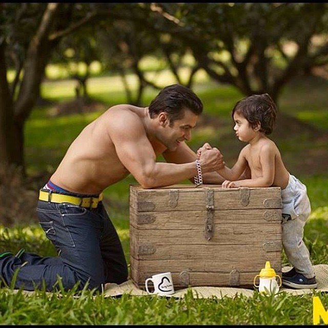 Salman Khan a publicat o fotografie pe contul de Instagram în care face skandenberg cu un băieţel. Actorul s-a lăsat la bustul gol şi pare foarte fericit în compania copilului cu care se joacă.