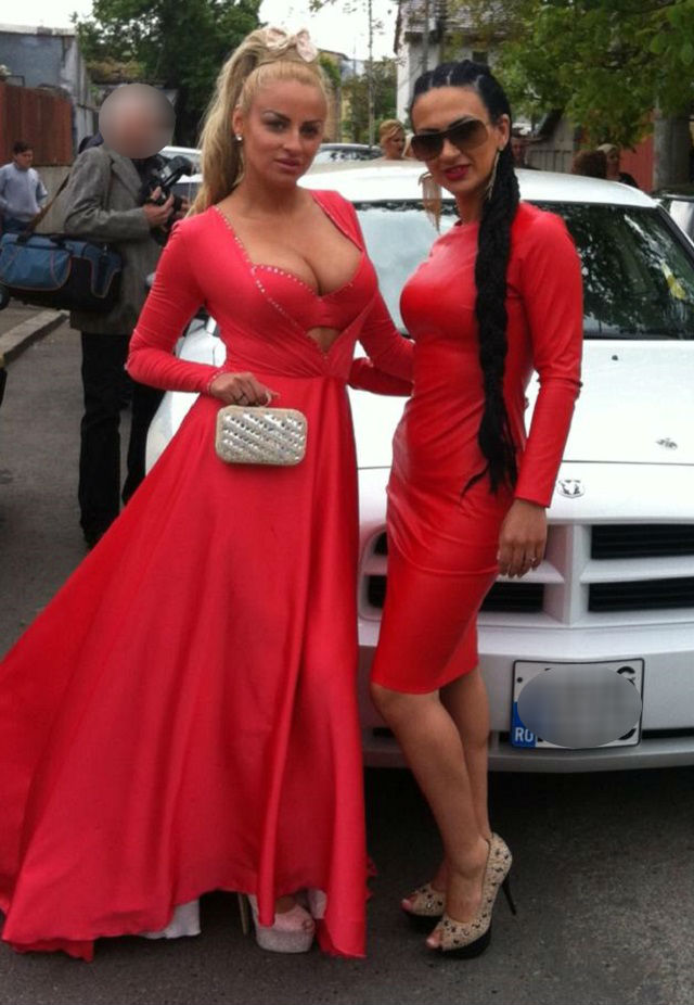 Sânzi apare alături de o fată care este îmbrăcată tot în roşu, însă vedeta i-a eclipsat pe toţi cu ţinuta asta. Blondina a optat pentru o rochie roşie lungă, cu un decolteu adânc, ceea ce i-a făcut pe cei prezenţi să-şi piardă minţile.