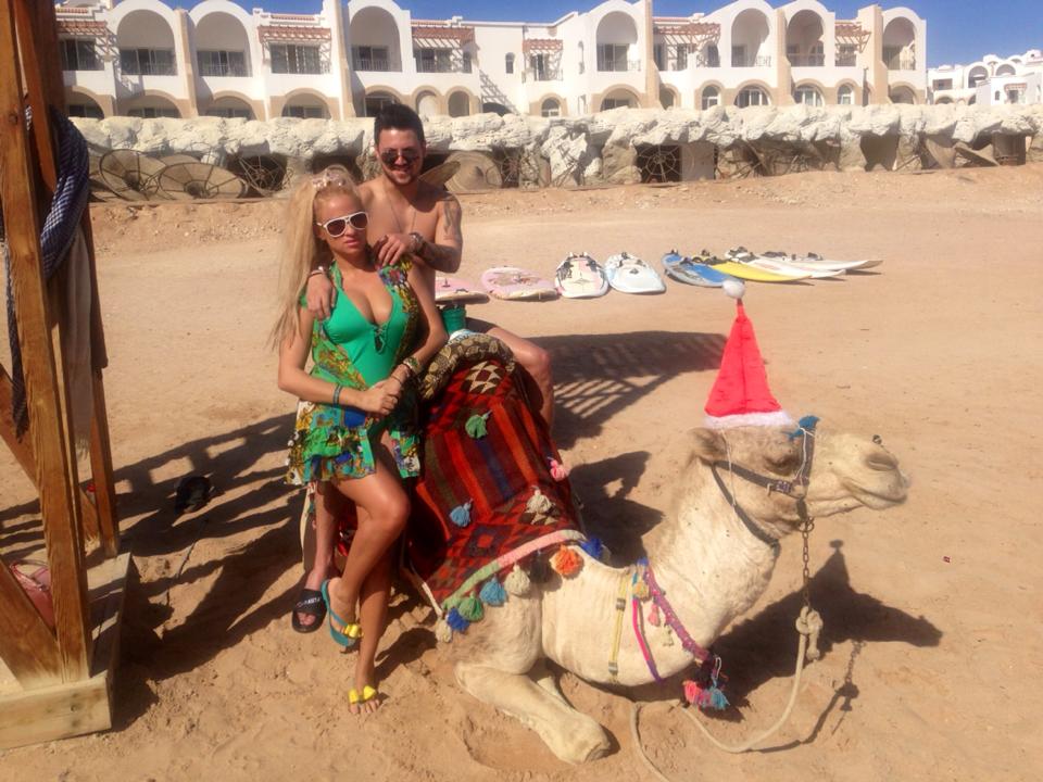 Cei doi au ales ca destinaţie Egiptul. În timp ce în Bucureşti este foarte frig, Sânzi şi al său iubit se relazxează pe o plajă din Egipt. Frumoasa blondină a postat pe Facebook o fotografie în care apare alături de iubitul ei pe o cămilă. Ei, asta da viaţă.