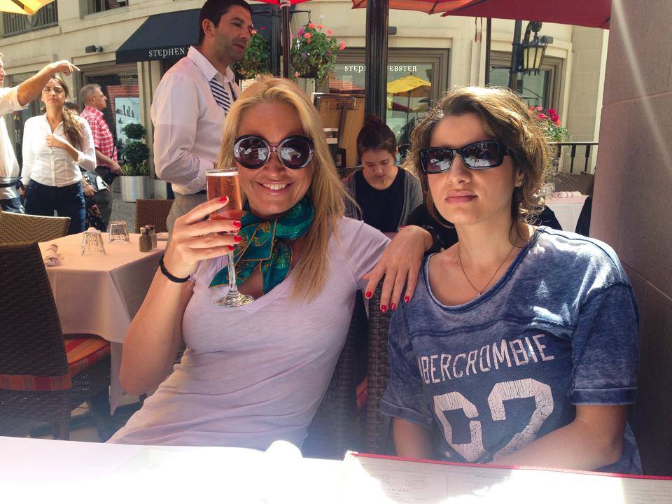 Apoi, s-au îndreptat spre o terasă, unde au savurat un pahar de şampanie. Blonda lui Piţurcă arată cum nu se poate mai euforică!