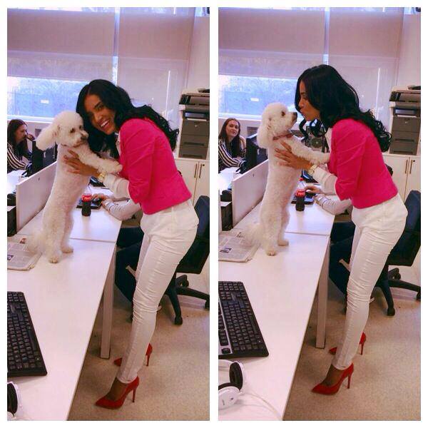 Cu aşa atmosferă, să tot vii la locul de muncă. Adelina se simte bine în redacţie, mai ales când un patruped e gata oricând să sară pe tine şi să îţi arate afecţiunea.
