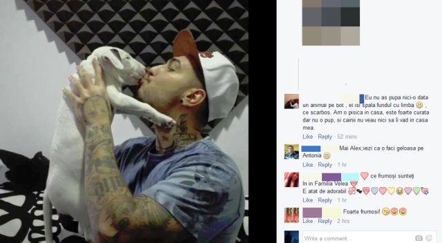 De atunci, căţelul Ahile, căci despre ei vorbim, este prezent foarte des în postările de pe reţelele de socializare ale lui Alex Velea. Însă, ultima imagine cu micuţul patruped a creat zâzanie printre fanii cântăreţului. În fotografie artistul îşi pupă animalul pe bot. "Mai Alex, vezi că o faci geloasă pe Antonia", a scris un admirator.