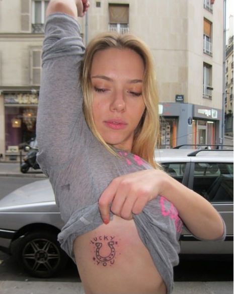 Actriţa Scarlett Johansson (27 ani) şi-a mărit colecţia de tatauje. Vedeta de la Hollywood a ales de data aceasta un desen care este convinsă că o să-i poarte noroc. Este vorba de o potcoavă, însoţită de inscripţia "Lucky you".