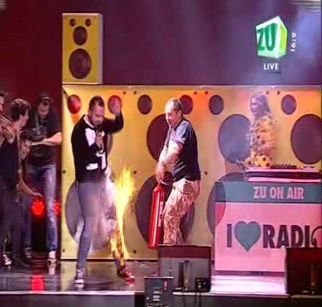 Premiile Zu Music Awards au adus cu ele un incident. O grindă a căzut peste aparatura de pe jos şi un scurt circuit a pornit focul. În timp ce flăcările mistuiau scena, Morar a încercat să stingă incendiul cu piciorul, moment în care hainele i-au luat foc.