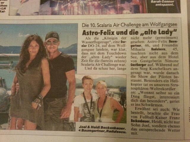"Dacă ați citi articolul, ați afla că «bătrâna» nu e nici prietena mea, nici doamna Beckenbauer, ci mai exact DO-24, un hidroavion «vechi».”, a menţionat paraşutistul.