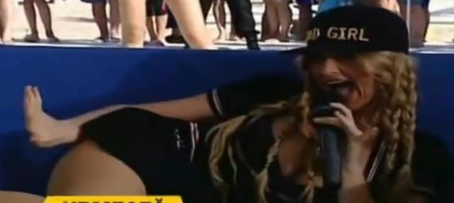 Artista Tara s-a dezlănţuit într-o emisiune TV. Cântăreţei nu i-a păsat de camerele de filmat şi şi-a arătat fundul în toată splendoarea lui.