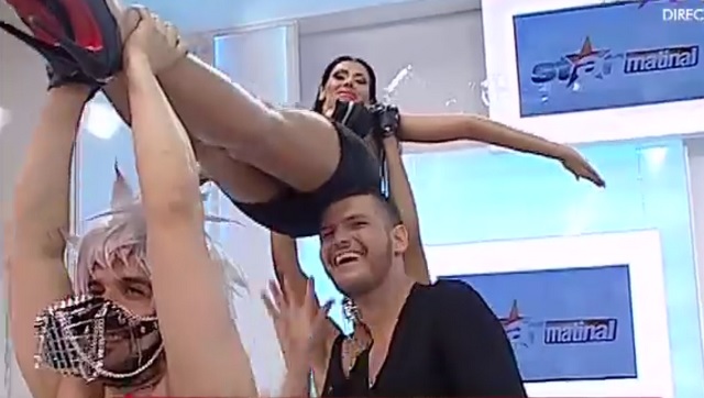 Raluca Dumitru a fost "la înălţime". După ce Alyanna Lu a cântat în platou la "Star matinal", bruneta sexy a ajuns... pe capul dansatorilor ei şi-al lui Bote.