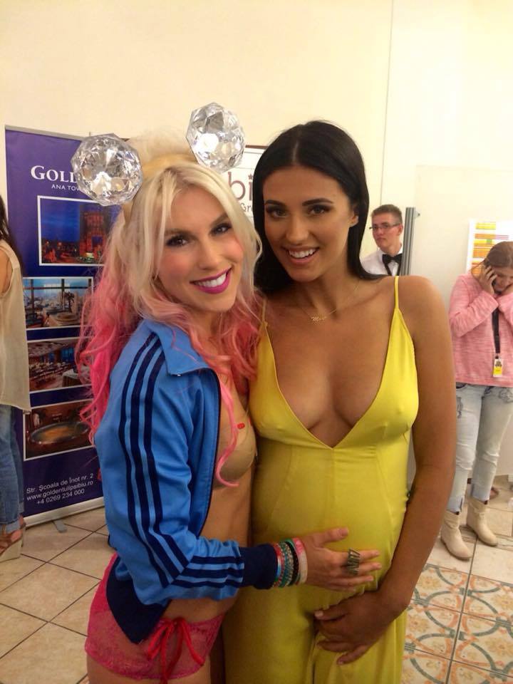De curând, Corina a postat pe o reţea de socializare mai multe imagini cu graviduţa-vedetă. Îmbrăcată într-o rochie galbenă, cu decolteu adânc, Antonia s-a lăsat mângâiată pe burtică de Corina. Decolteul impresionant lasă la vedere sânii perfecţi şi super sexy.