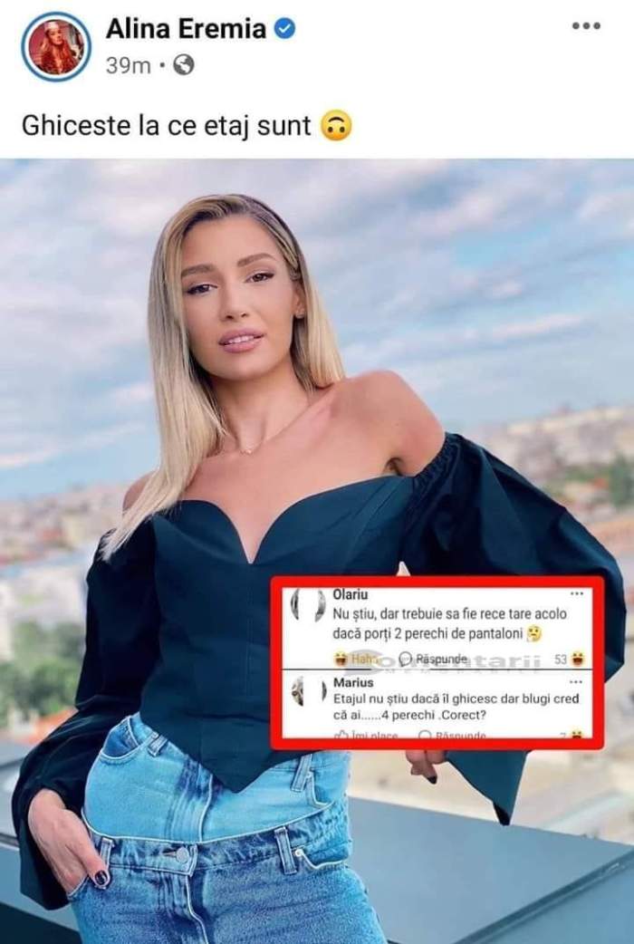 Admiratorii i-au lăsat o serie de comentarii amuzante, iar Alina nu a ezitat să le posteze cu mențiunea că are niște urmăritori simpatici. Nu le poartă pică pentru faptul că au tras-o la răspundere, ci s-a amuzat copios.
