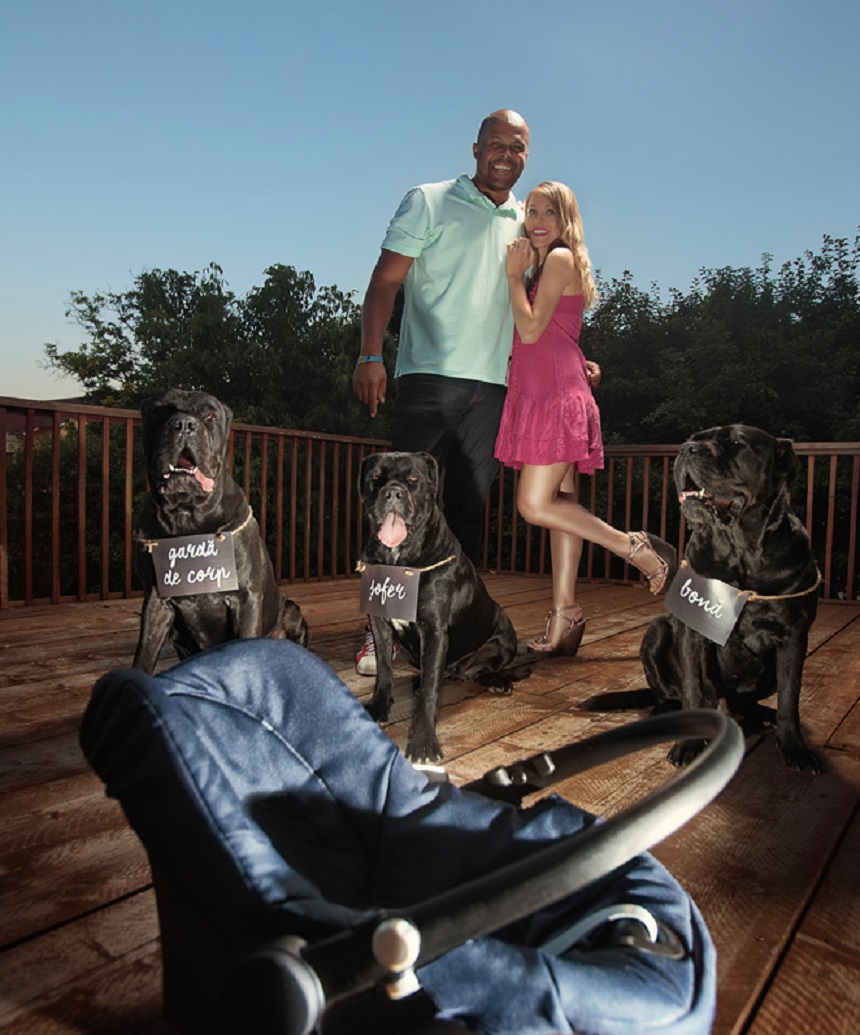 Andreea şi Cabral Ibacka s-au fotografiat alături de câiniilor, fiecare patruped având rolul lui bine stabilit după ce bebeluşul va veni pe lume.