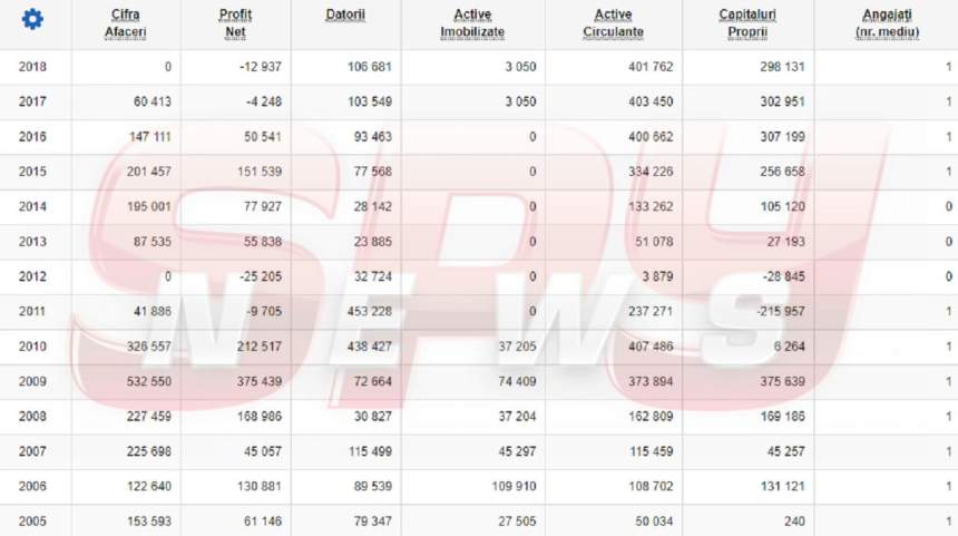 Jurnalista a declarat, în ultimul an fiscal, respectiv 2018, pierderi de -12.937 de lei. De asemenea, cifra de afaceri a fost 0.