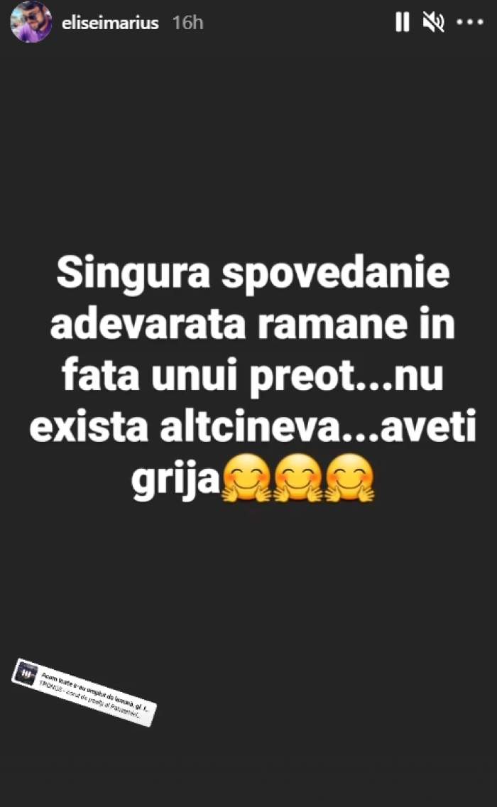 Bărbatul, care nu trece printr-o perioadă bună, a mărturisit pe contul său de Instagram că singura spovedanie rămâne în fața preotului, nu în fața altora. Totodată, el a publicat și o piesă bisericească pe contul său de Instagram.