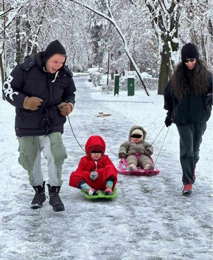 Cei cinci au ieșit la zăpadă și s-au bucurat de clipele speciale petrecute împreună. Ana Pandeli și actorul le-au dat cu săniile pe fetițele lor, iar băiatul s-a dat singur, după care s-au jucat toți cu zăpadă.