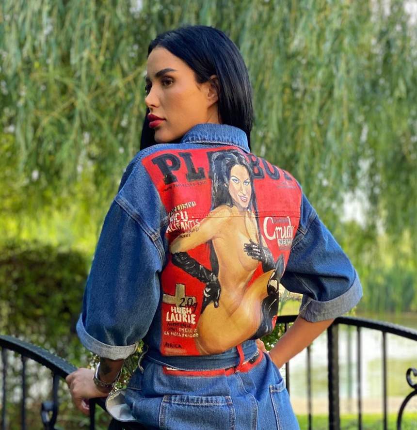 Nu, nu este orice tip de salopetă, ci una pe care focoasa brunetă și-a imprimat o fotografie cu ea goală dintr-un celebru pictorial realizat pentru una dintre cele mai cunoscute reviste pentru adulți de la noi din țară, iar galeria foto stă drept dovadă!