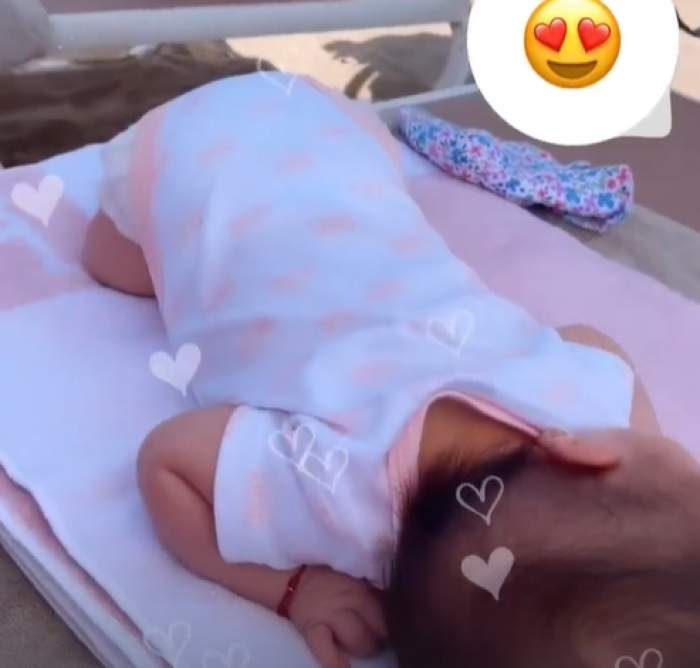 După ce în urmă cu câteva săptămâni au botezat-o pe fetiță într-un cadru restrâns, acum aceștia au ales deja să meargă alături de fetița lor și la malul mării, acolo unde Eva Maria a atins pentru prima dată cu piciorușele nisipul de pe plajă și a intrat și în apă.