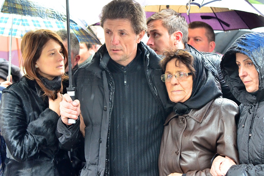 - Gică Popescu, la înmormântarea tatălui său, alături de soţia şi de mama sa. SURSA FOTO: Hepta