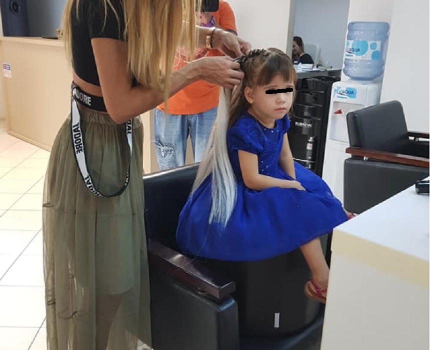 Andreea Tonciu a luat-o pe Rebeca şi au plecat împreună la salon. De această dată nu bruneta a fost cea care s-a aranjat, ci micuţa. Aceasta a stat cuminte pe scaun până când stilista i-a împletit părul şi i-a pus şi ceva suplimentar pentru a avea o coadă lungă, aşa cum este la modă acum.