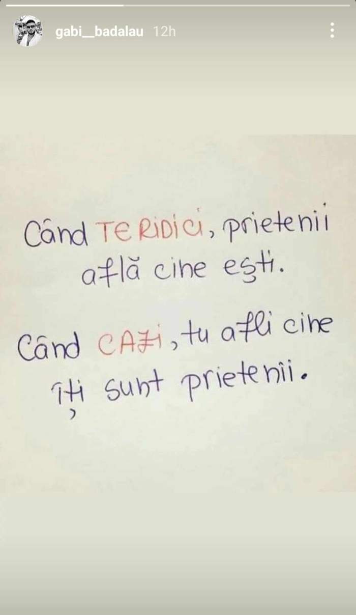 Gabi Bădălău este un om sincer, care ori de câte ori are ocazia împărtășește fel și fel de mesaje cu fanii lui. De această dată, pe rețelele personale de socializare, celebrul afacerist a postat un mesaj cu subînțeles. Se pare că iubitul Biancăi Drăgușanu a fost trădat de prieteni. Iată ce a pus el pe pagina sa de Instagram!