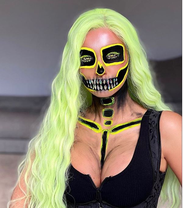 Pe față, gât și decolteu, Antonia s-a pictat astfel încât să întruchipeze un schelet uman. Ochii vedetei au completat întreaga ținută, lentilele de contact de culoare verde fiind o alegere foarte potrivită și de efect.