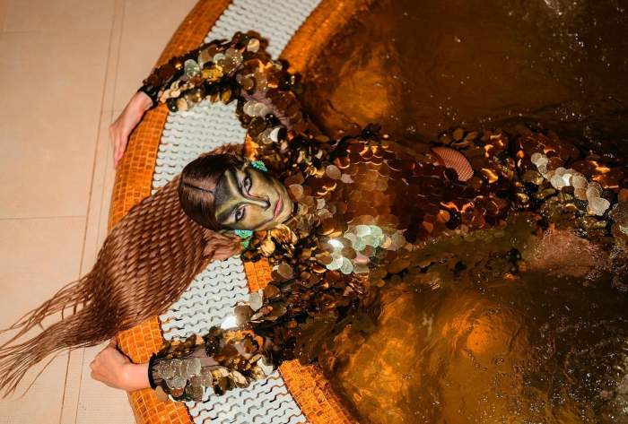 Iulia Albu a decis să se costumeze în Știma Apelor. Aceasta a strălucit de-a dreptul într-un costum auriu, un machiaj pe măsură, foarte strident, iar părul a fost prins la spate în formă de fundiță. Creatoarea de modă a făcut o ședință foro de toată frumusețea și a urcat imediat imaginile pe rețelele de socializare.