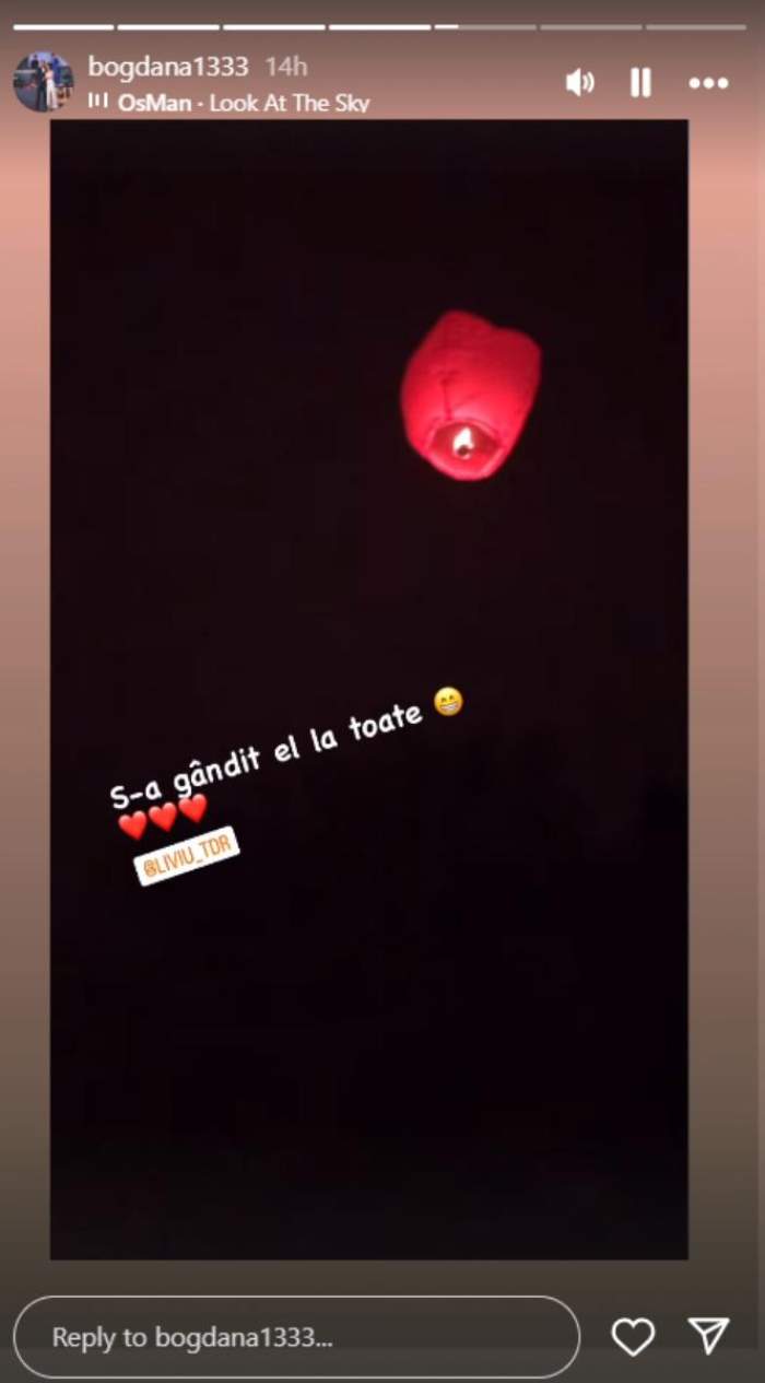 Zilele trecute, Bogdana de la Mireasa, sezonul 8, a împlinit frumoasa vârstă de 24 de ani. Pentru că nu avea cum să rateze un așa eveniment special în viața lui, Liviu a surprins-o cu baloane, cadouri, petale de trandafir și un lampion.