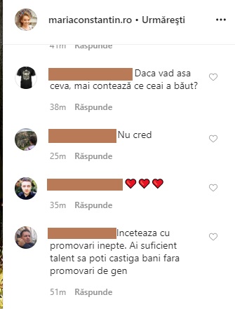 „Nu cred / Vrăjeală / Încetează cu promovări inepte. Ai suficient talent să poți câștiga bani fără promovări de gen / Se vede că poza e modificată! Sigur e bun ceaiul”, au fost câteva dintre comentarii.