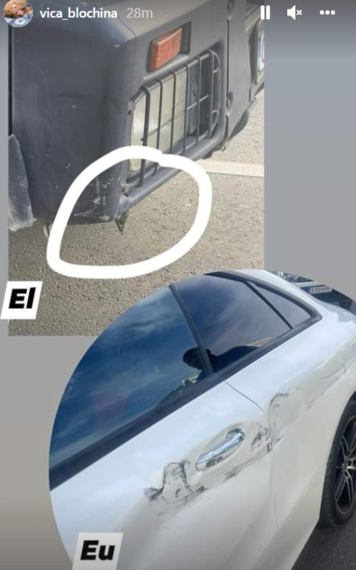 Dimineața nu a început deloc bine pentru Vica Blochina. Cunoscuta vedetă s-a trezit cu mașina sa de lux puternic avariată. Vinovat pentru toate cele întâmplate e un șofer de camion. Acesta nu a păstrat distanța laterală și s-a apropiat mult prea tare de autoturism.