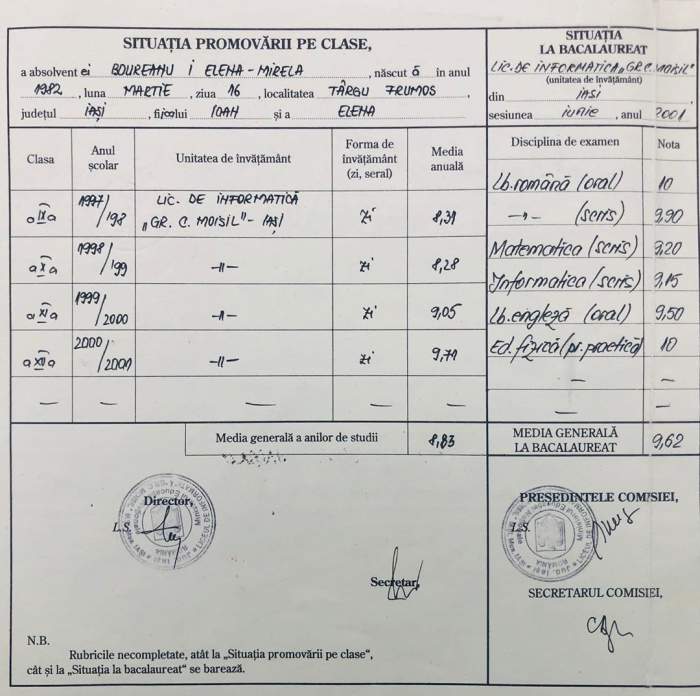 - Mirela Vaida și-a postat diploma de BAC pe rețelele de socializare.