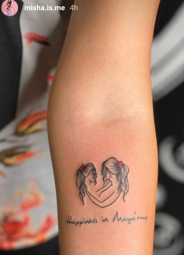 Noul ei tatuaj este un special. Înfățișează două persoane, mamă fiică (ea și fiica ei, Maya). Acestea stau față în față și aceeași coafură. În partea de jos a tatuajului este scris și un text foarte drăguț, pe care Misha îl va purta întreaga ei viață pe piele.