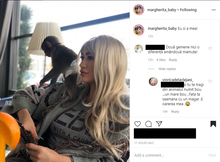 Bineînțeles, au apărut rapid și comentariile răutăcioase. „Două gemene, nicio diferență, amândouă maimuțe!”, a scris un internaut. Margherita nu a răspuns, dar mama ei a luat atitudine și a tăiat în carne vie.