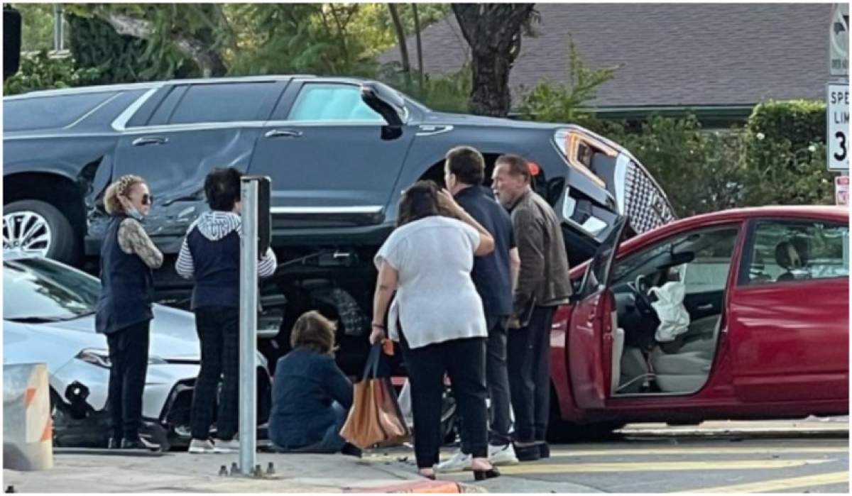 Un accident de mașină rupt parcă din filmele de acțiune ale lui Arnold Schwarzenegger l-a avut ca protagonist chiar pe celebrul actor. SUV-ul negru imens al starului a ajuns peste un Prius și un Porsche Cayenne, astfel fiind avariat și un al patrulea autoturism.
