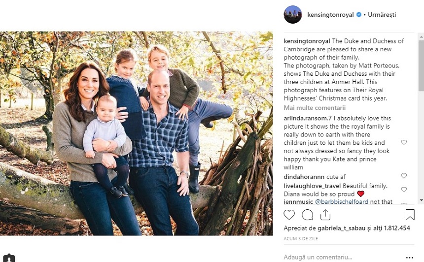Nu este prima dată când casa regală face publice astfel de fotografii, de curând şi prinţul Williams cu ducesa Kate au postat o frumoasă fotografie de Crăciun. Ei au optat pentru un portret de familie cu cei trei copii ai săi.