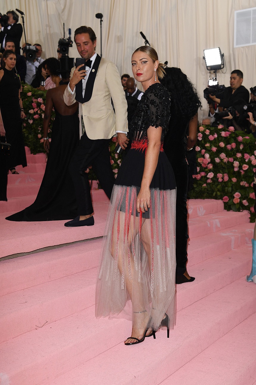 Maria Șarapova a ales o rochie de la Givenchy, neagră, în partea de sus, și transparentă în partea de jos.