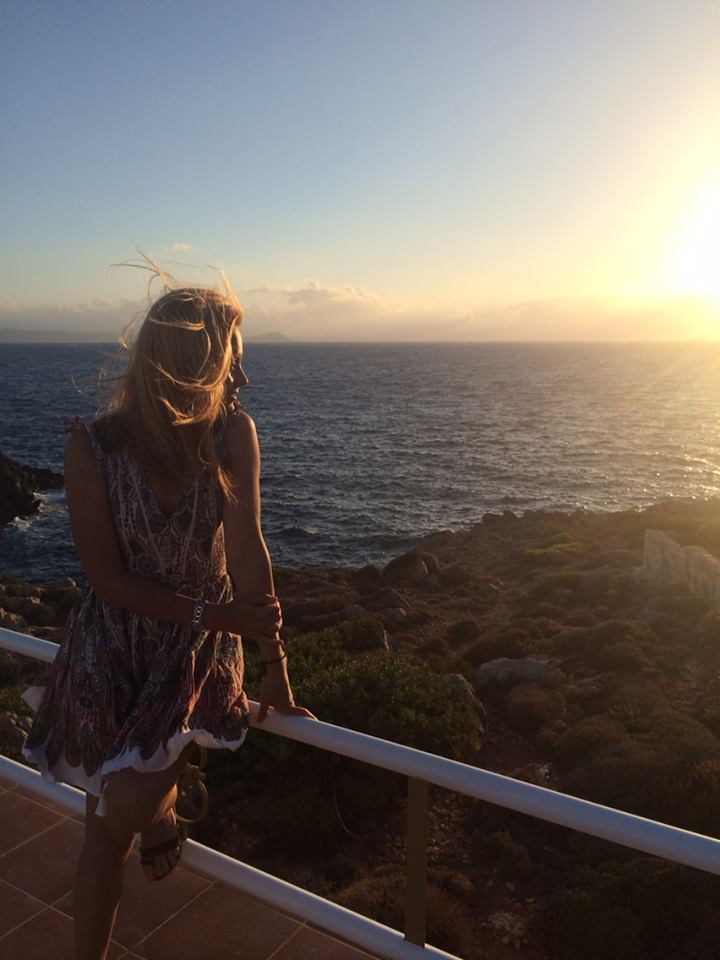 Simona se bucură de fiecare apus de soare la mare. Îmbrăcată cu o rochie maro cu alb, cu părul ciufulit de vânt, Simona s-a fotografiat şi seara trecută privind contemplativ marea la asfinţit.