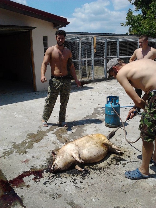 O amică de-a lui a postat o imagine pe contul său în care Tomiţă tocmai ucisese un porc. Animalul era însângerat pe jos, iar tânărul părea mândru de fapta sa.
