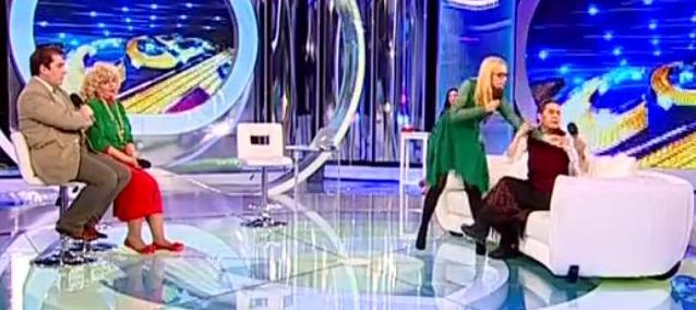 "Hei, femeia lui Dumnezeu, opreşte-te! Te rog să încetezi. Dă-mi microfonul. Te rog să respecţi regulile acestei emisiuni, regulile moderatorului,