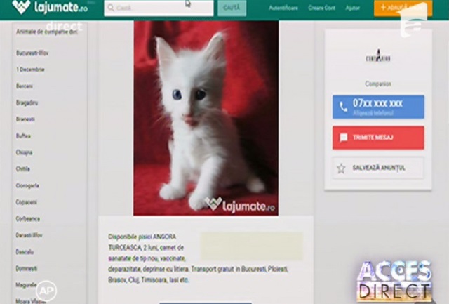 "Nu pot să cred. Au pus pisica la vânzare pe lajumate.ro!", a exclamat prezentatoarea TV, în direct, la "Acces Direct"