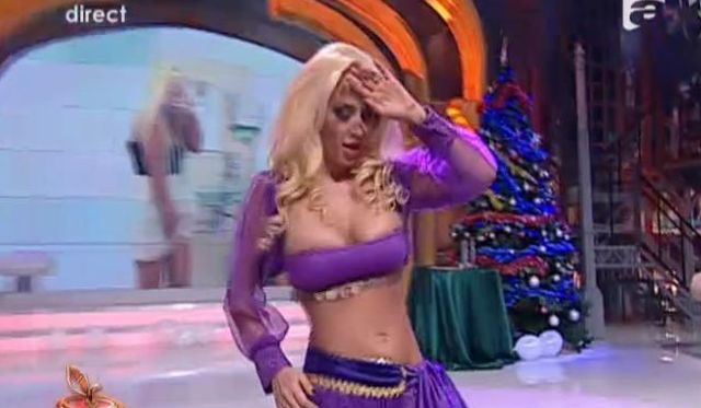Simona Traşcă a incendiat scena îmbrăcată în cadână! Blonda a dansat provocator pe muzică arăbească şi şi-a arătat sfârcurile
